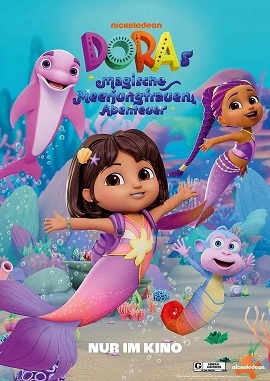 Dora (Stimme im Original: Diana Zermeño) und Boots (Asher Colton Spence) verwandeln sich dadurch nämlich in Meerjungfrauen und tauchen zusammen mit der Meerjungfrau Marisol und Rosa dem Delfin ein in eine Unterwasserwelt voller Abenteuer. | |