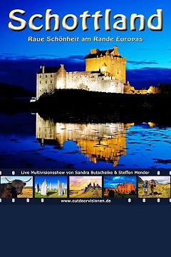 | In ihrer Live-Multivisionsshow berichten Sandra Butscheike und Steffen Mender über ihre mehrmonatigen Reisen durch Schottland. Brillant fotografiert und mit Videosequenzen bereichert, präsentieren die Fotojournalisten dieses raue Land am Rande Europas in HDAV Qualität. Mehrere Monate waren die Beiden im rauen Nordwesten Europas unterwegs. Ihre Erwartungen wurden bei Weitem übertroffen. Denn Schottland ist weitaus mehr als Whisky, Kilt und Dudelsack. Auf ihren Reisen bot sich eine einzigartige Mischung aus atemberaubenden Landschaften, lebendiger Kultur und tausendjähriger Geschichte. Einzigartig ist auch die Gastfreundschaft und Herzlichkeit der Menschen. All das macht eine Schottlandreise zu einem unvergesslichen Erlebnis. | |